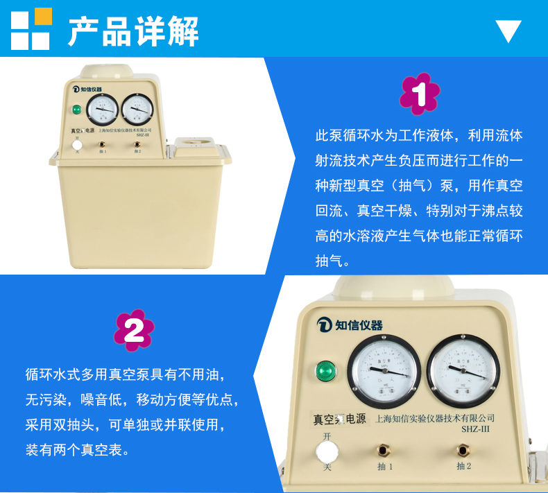 此循環(huán)泵以水為工作介質(zhì),利用流體射流技術(shù)產(chǎn)生負壓而進行工作的一種新型真空(抽氣)泵,用作真空回流、真空干燥,特別對于沸點較高的水溶液產(chǎn)生氣體也能正常循環(huán)抽氣。此循環(huán)泵采用不可再生PVC材料,經(jīng)久耐用,不易腐蝕。