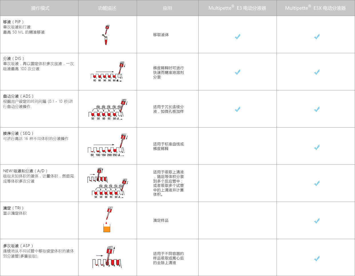 Multipette? E3/E3x 電動分液器結(jié)合分液管,提供從 1 μL——50 mL 的分液范圍,特別適合于高粘度、易揮發(fā)、易起泡、高密度及危險性等問題溶液的精準(zhǔn)移取及分裝。中文彩色界面、RFID 數(shù)據(jù)讀寫、睡眠模式、8 檔速度調(diào)節(jié)等功能提升您的使用體驗。