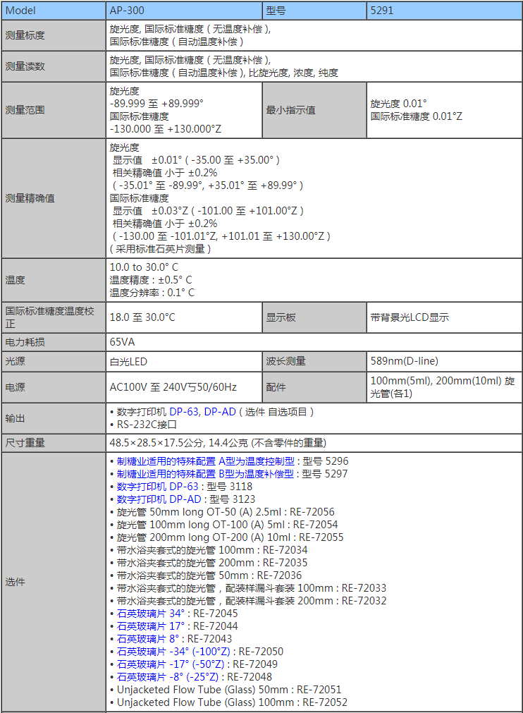 | 測量讀數(shù) | 旋光度,國際標(biāo)準(zhǔn)糖度(無溫度補(bǔ)償),國際標(biāo)準(zhǔn)糖度(自動溫度補(bǔ)償),比旋光度,濃度,純度 |