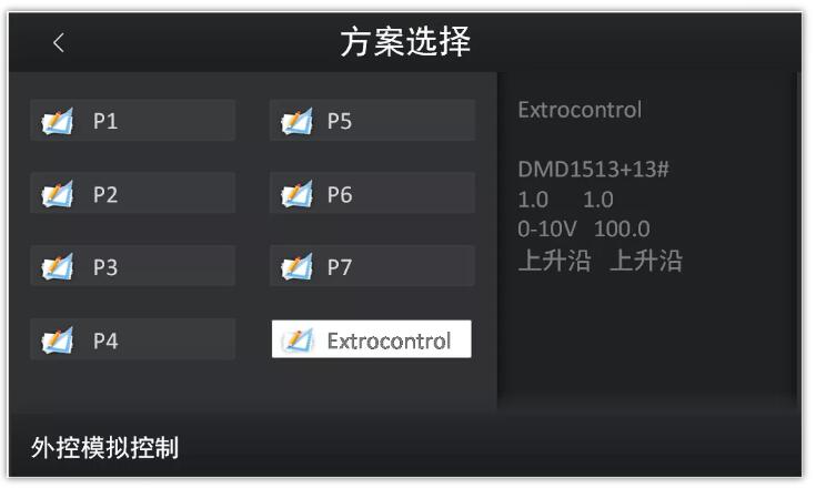 一共有8個方案可選擇,其中前7個方案是內(nèi)控可編程,每個方案最多包含10個步驟;最后一個方案為外控模式。